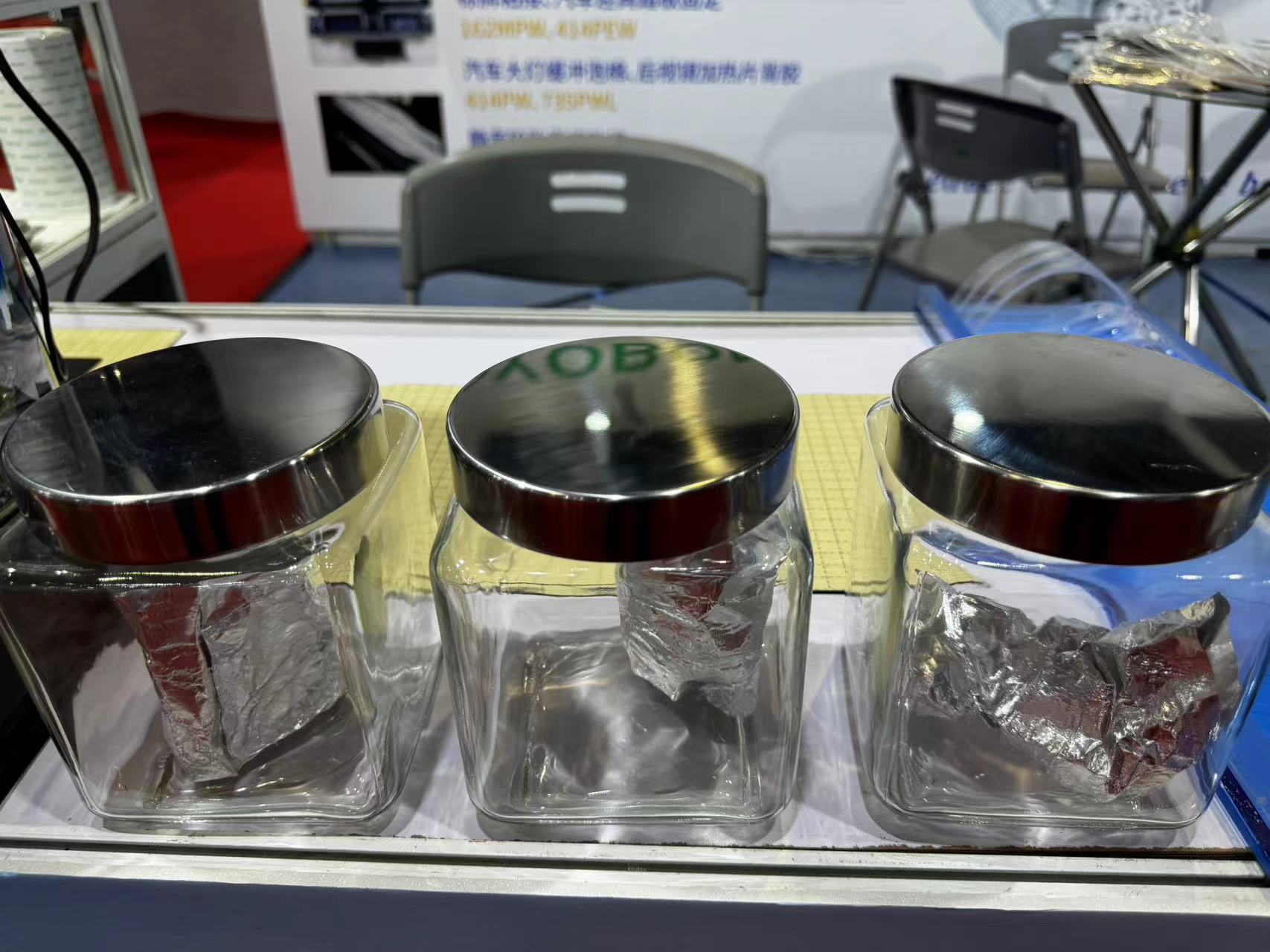 現(xiàn)場展示的這三只氣味瓶其中膠帶樣品為KR-414PW,在單面貼合鋁箔后,取樣面積按照100*200mm,然后放置于80℃烘箱中2小時后取出,冷卻至常溫后測試氣味。通過現(xiàn)場客戶嗅辨,均反饋氣味在3.0至3.5之間,沒有明顯的刺激性,對該量產(chǎn)品的氣味表現(xiàn)給予了積極肯定。對KR-414系列應(yīng)用于空調(diào)風(fēng)管保溫、空調(diào)風(fēng)口、HOD方向盤、座椅SBR傳感器、內(nèi)飾線束消音海綿等用途加分不少!