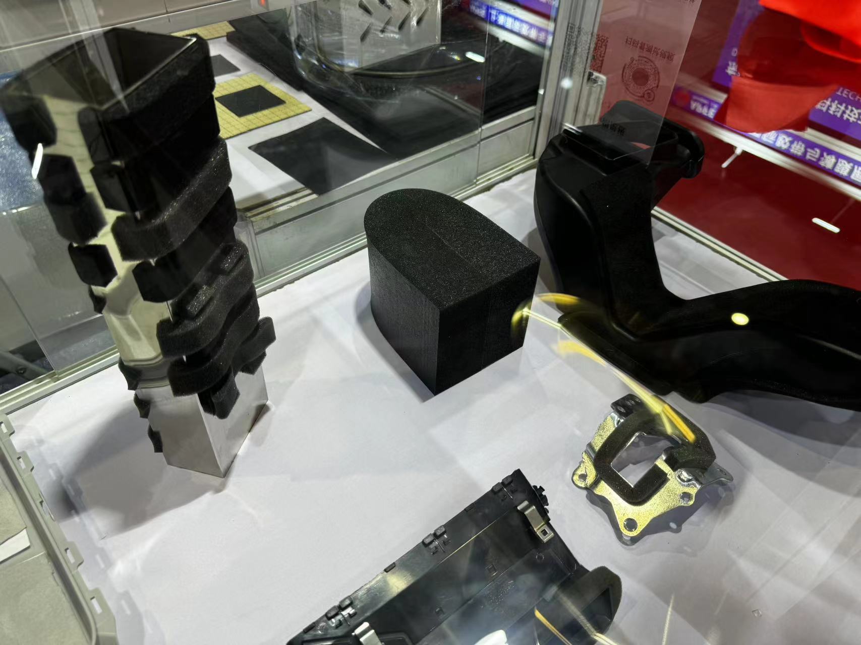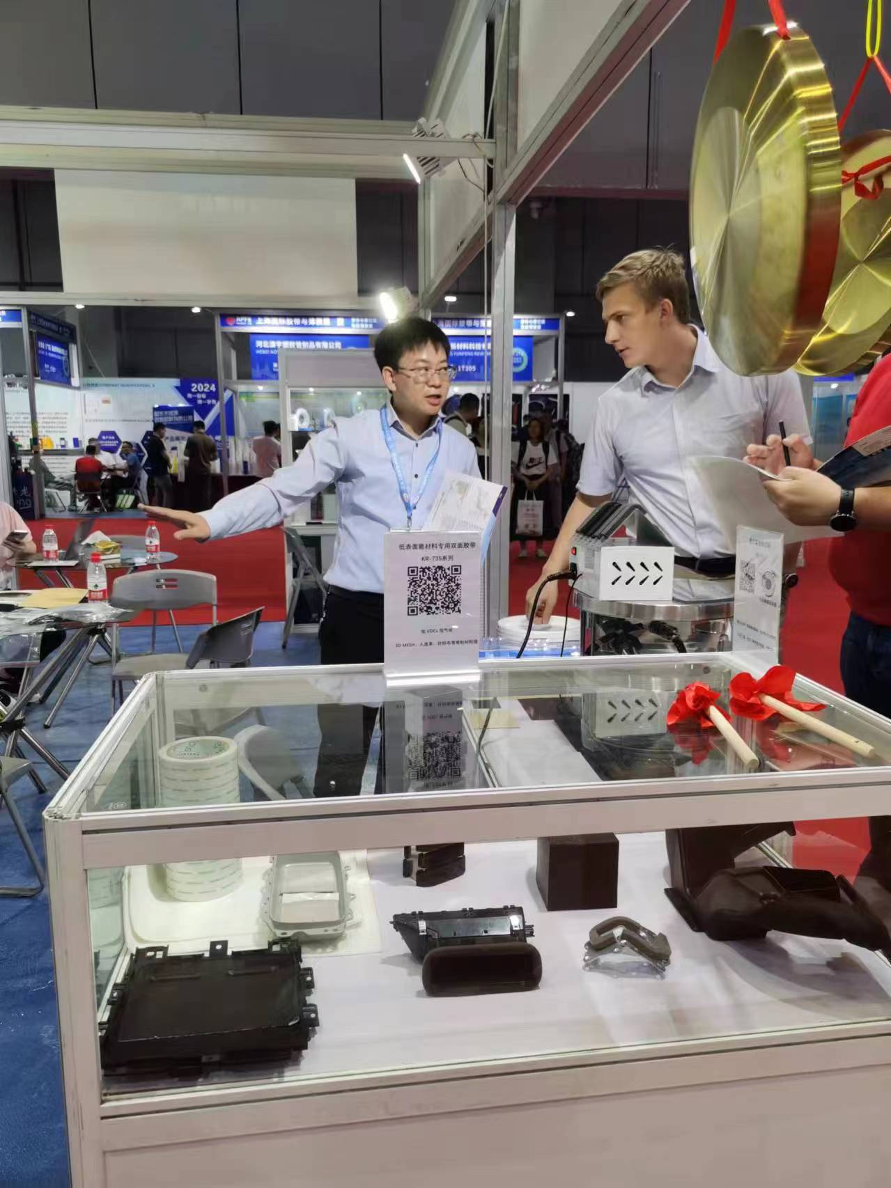 我們現(xiàn)場展示了30kg密度PUR海綿、150kg密度EPDM開孔及閉孔海綿在不銹鋼方管上的小斷面折彎耐反彈效果,50mm厚度PUR海綿對粘耐反彈效果。同時還展示了帶潤滑油脂的車門鎖五金件海綿粘貼、車載無線充電托盤與仿麂皮粘貼、3D MESH與車門飾條骨架粘貼的實物樣品,也讓客戶親眼見識了水性壓敏膠在低表面能材料粘接應(yīng)用的優(yōu)勢,免底涂、更高效,讓客戶對水性壓敏膠的性能有了全新的認(rèn)知。