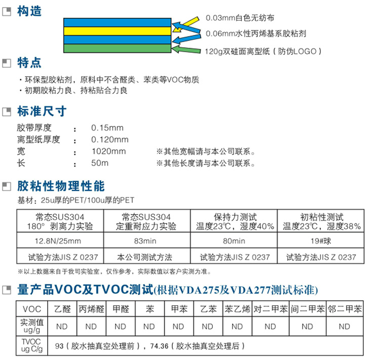 KR-036PWL是一款采用30μm原木漿紙(也成綿紙、無紡布)基材,雙面分別涂布55μm水性丙烯酸膠水,總厚度130μm的低氣味低VOC膠帶。特點(diǎn)一、良好的初粘力、保持力,耐高低溫性能;特點(diǎn)二、與EPDM半開孔板閉孔海綿良好的貼合性能,降低貼合養(yǎng)生時間,提升加工效率;特點(diǎn)三、膠水硬度適中,半斷和全斷模切加工均適合,高溫不溢膠,低溫任有良好的初粘力;特點(diǎn)四、重工性好,貼合位置出現(xiàn)偏差時可在粘接面剝離后重貼;特點(diǎn)五、低氣味低霧化(FOGGING)特性,不釋放化學(xué)性氣味,也不釋放PM2.5顆粒物吸附于擋風(fēng)玻璃,有利于行車安全及乘客舒適性感受。
