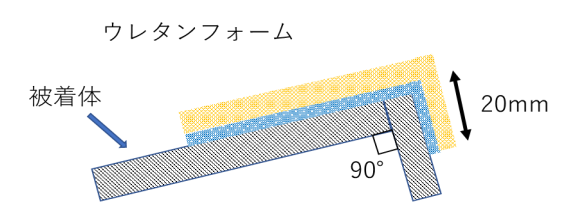 方法:膠帶一面貼合在5mm厚度的聚氨酯泡棉上,用2kg重的橡膠膠滾反復(fù)壓接2次放置24小時(shí)后,另一面貼合在90°形狀的被粘材料(SUS304/PP)上,用2kg重的橡膠膠滾反復(fù)壓接2次,放置20min后在如下環(huán)境條件中測(cè)試。